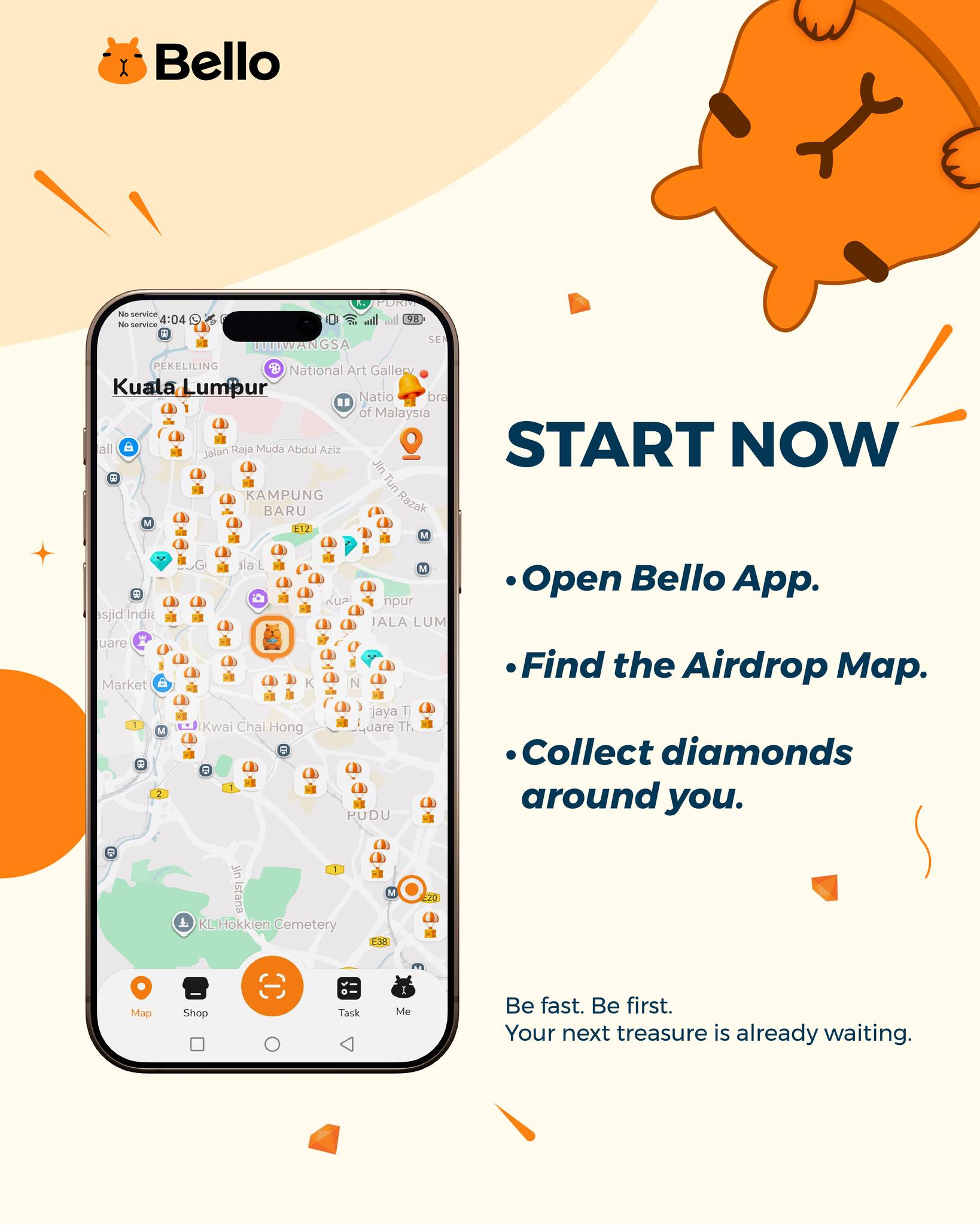 Think about it. You’re already going to work, getting food, meeting friends for tea. What if there was a Bello App that told you there’s a “treasure” along today’s route, or checking in at your usual spot could collect points? Wouldn’t that add a little something to your day?